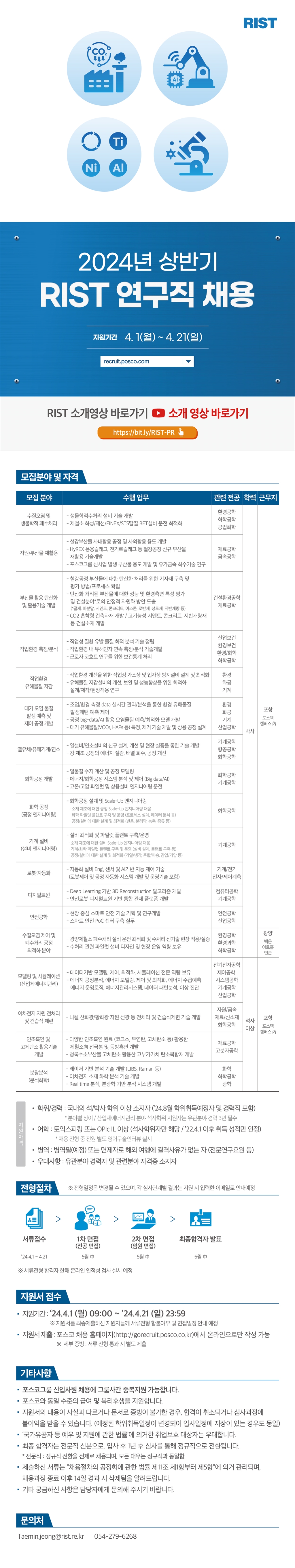 RIST는 1987년 포스코가 전액 출연하여 설립한 실용화 전문연구기관입니다.